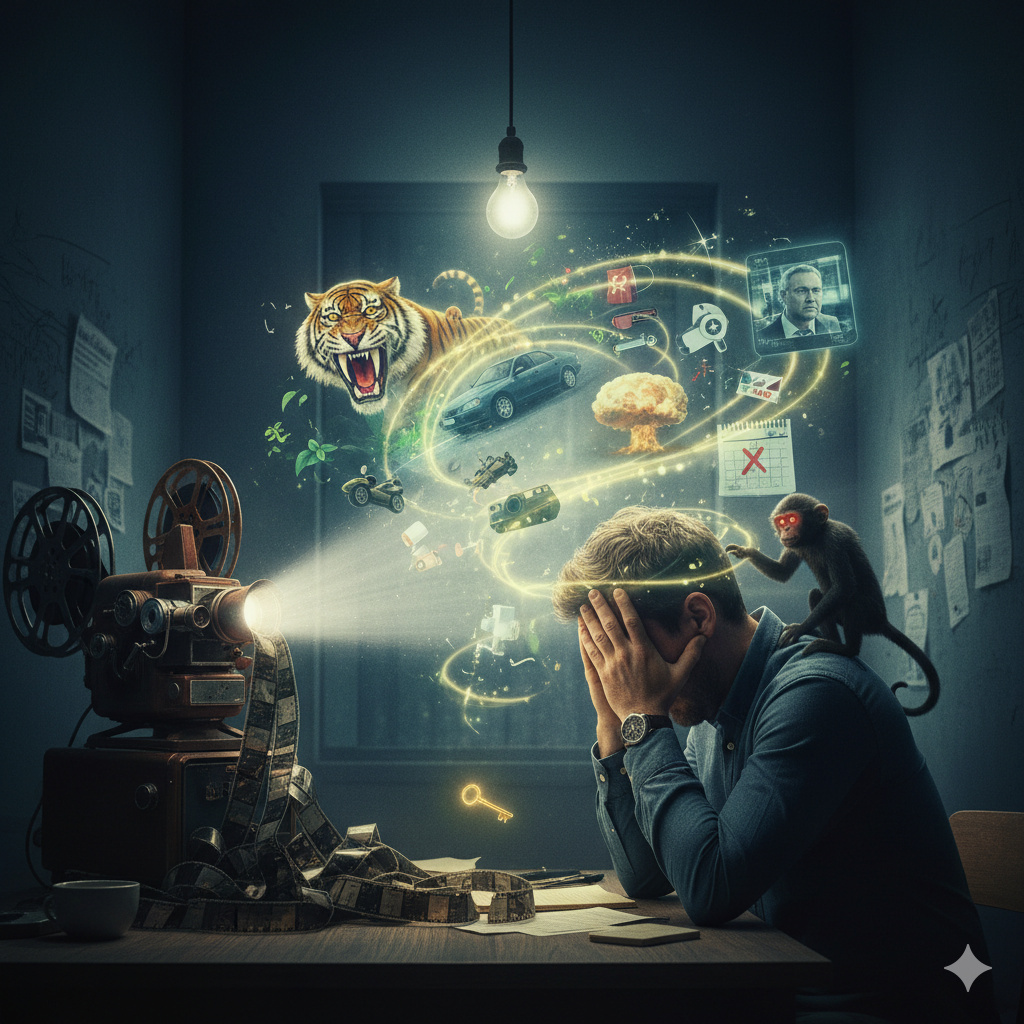 Тревога часто служит маской для более глубоких чувств, например, страха или стыда. Вместо того, чтобы столкнуться с настоящими переживаниями, мы окунаемся в панические размышления о будущем. Каждый триггер, например, телефонный звонок от начальника, запускает механизм руминации, который не имеет ничего общего с реальностью.